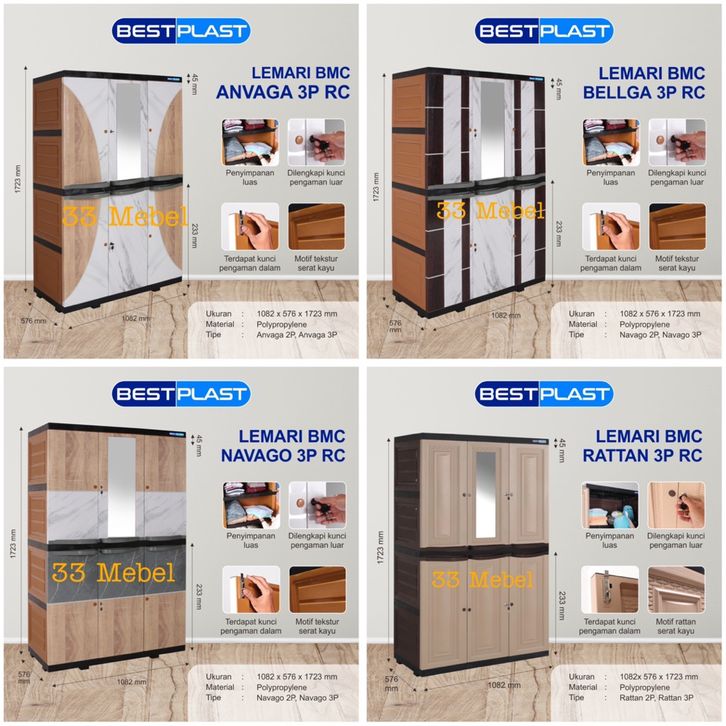 Lemari Pakaian Plastik Serbaguna BESTPLAST Rak Olymplast 2 Pintu/ 3 Pintu Dengan Cermin Pakai Kunci PROMO