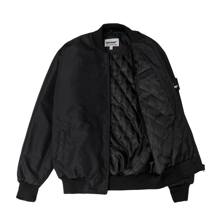 Hooligans Jacket Bomber Hugo Black Jaket Hitam Casual Pria Zipper Tebal