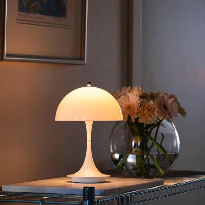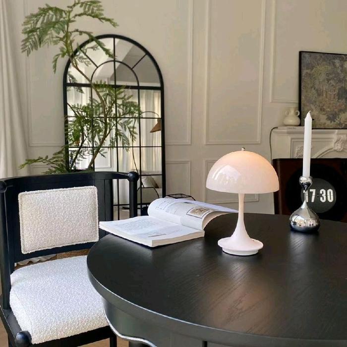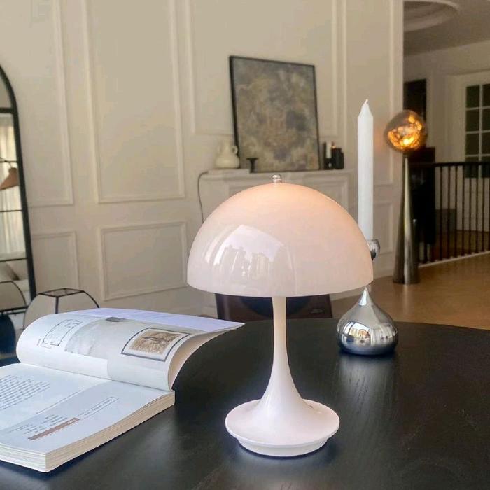 Lampu Meja LED Desain Jamur Hias HUIAN – 3 Mode Warna Dimmable Baterai 1200mAh (Putih)