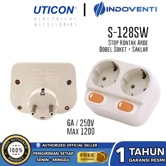 UTICON S-128SW Colokan Stop Kontak Arde Steker 2 Lubang Saklar Lampu