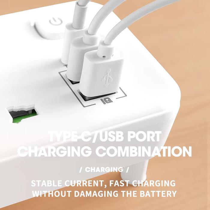 Stopkontak Daya AC Multiprise Tombol Jaringan USB Charge Terpisah Switch Adaptor Plug EU