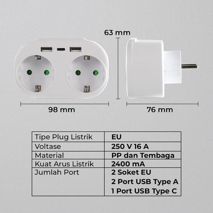 Stop Kontak USB Type C EU Plug Flame Retardant 16A 250V Wallpad Steker Colokan Listrik T Tembaga