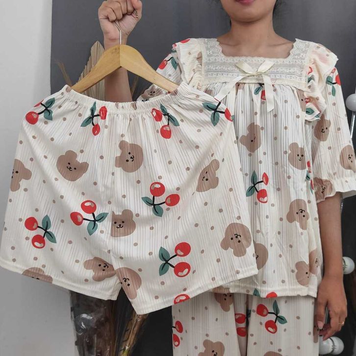 PROMO SET BAJU TIDUR PIYAMA LENGAN PANJANG BAHAN RIB KOREA IMPORT/ BAJU TIDUR WANITA PREMIUM