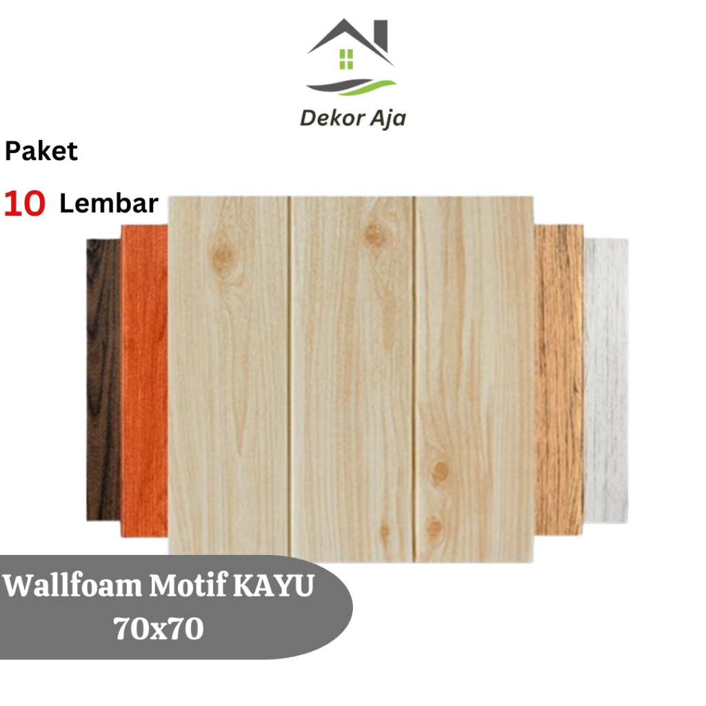 Paket 10 Lembar Wallpaper Dinding Stiker Dinding Wallfoam Dinding 3D Motif Kayu Wood Dekorasi Kamar 70x70cm Tebal 3MM