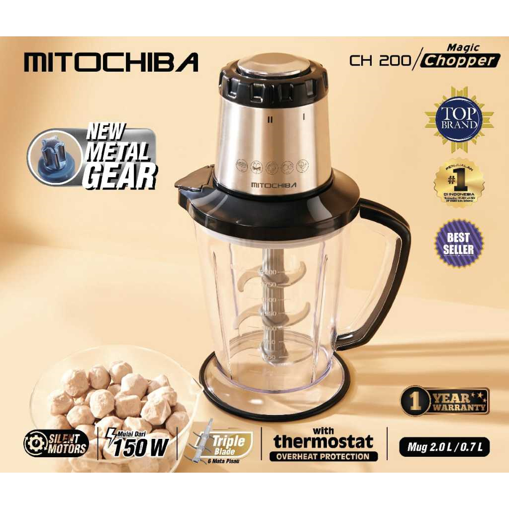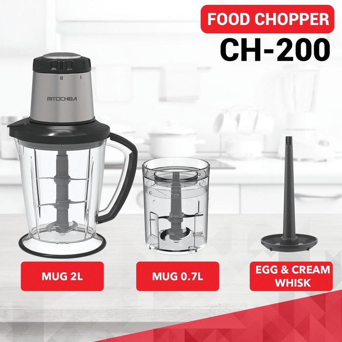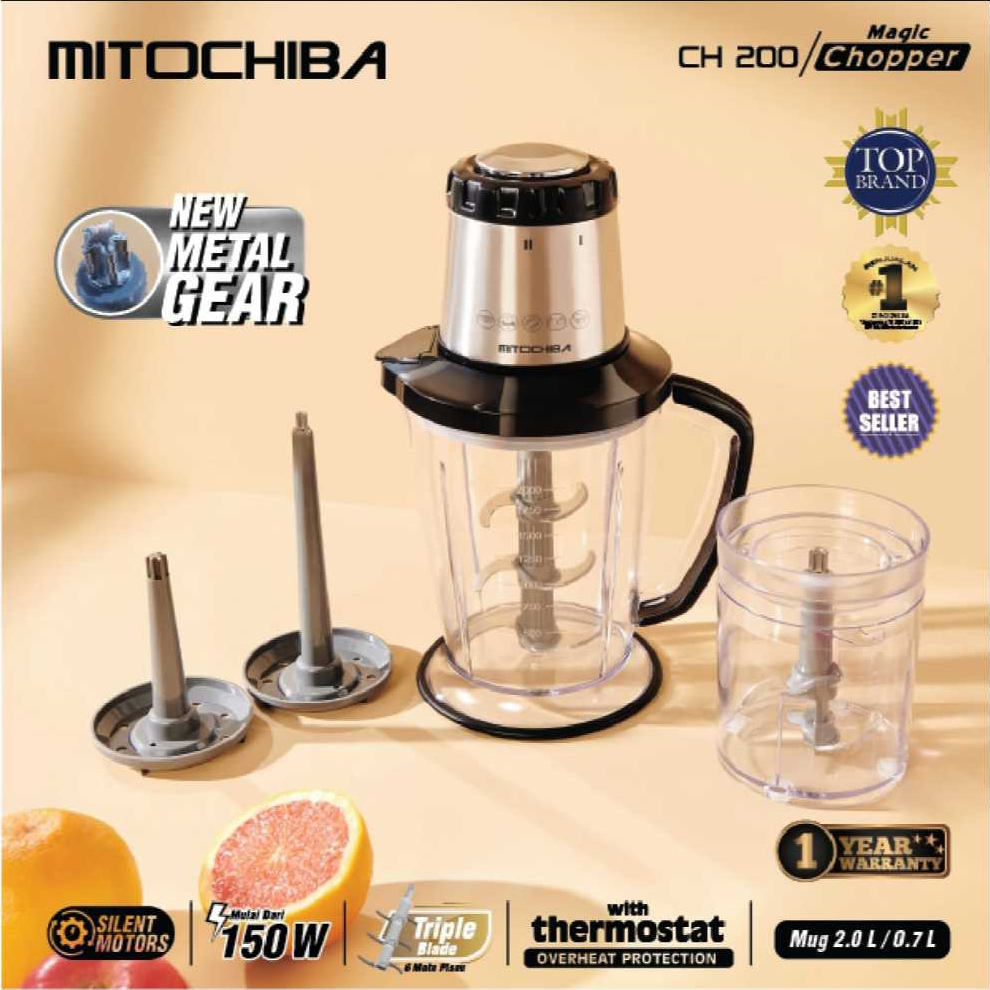 Mitochiba CH 200 Blender Food Chopper Daging dan Bumbu 3 Pisau Steel 2 Kecepatan Garansi Resmi