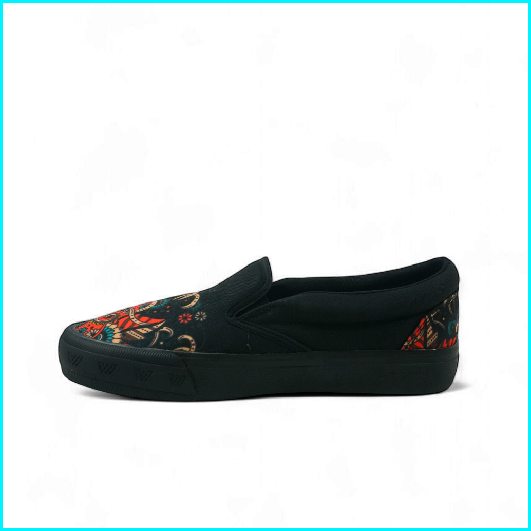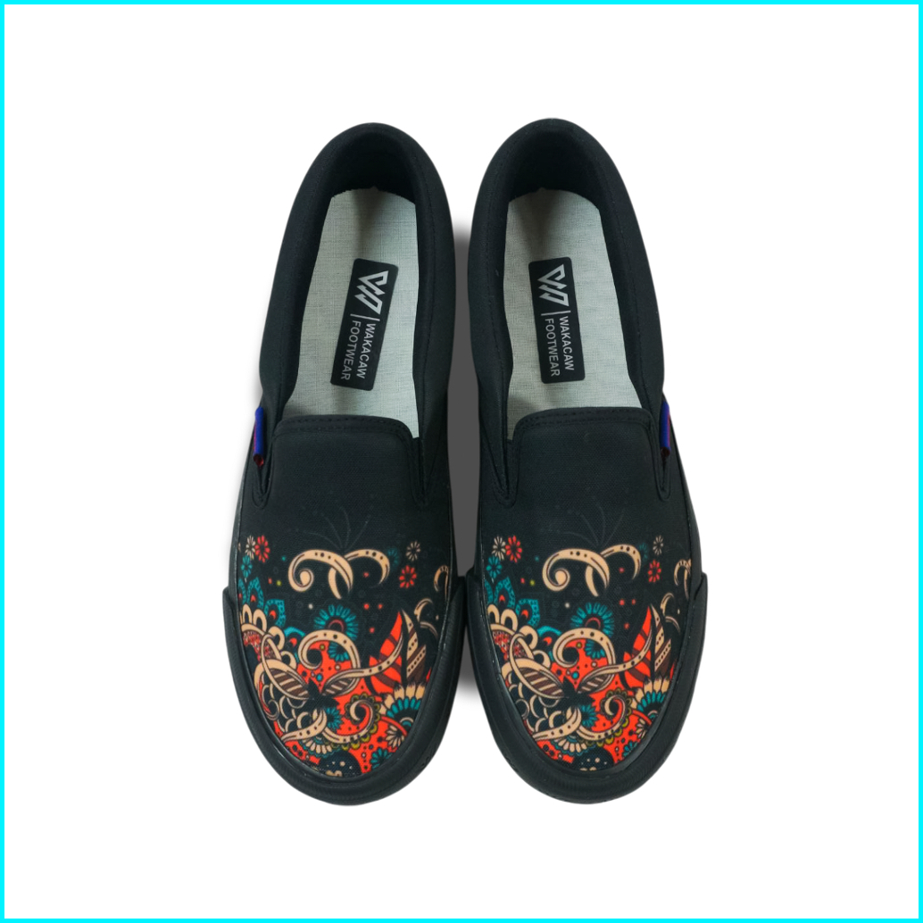 Wakacaw - Sepatu Slip On Batik Etnik All Black Sepatu Sneakers Slip On Pria Dan Wanita