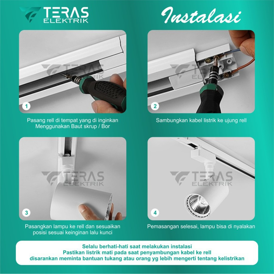 Paket Lampu Sorot 1 set isi 2 + Rel 1M LED Track Light Fitting E27