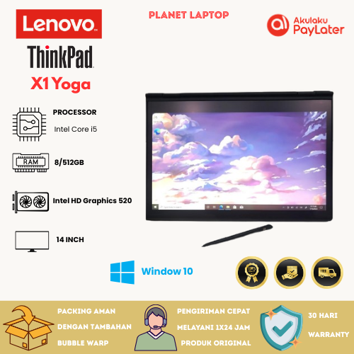 Laptop Lenovo X1 Yoga Touchscreen Core i5/i7 Gen 8 | 14 Inch Full HD | Ringan & Kencang | Kondisi Super Mulus