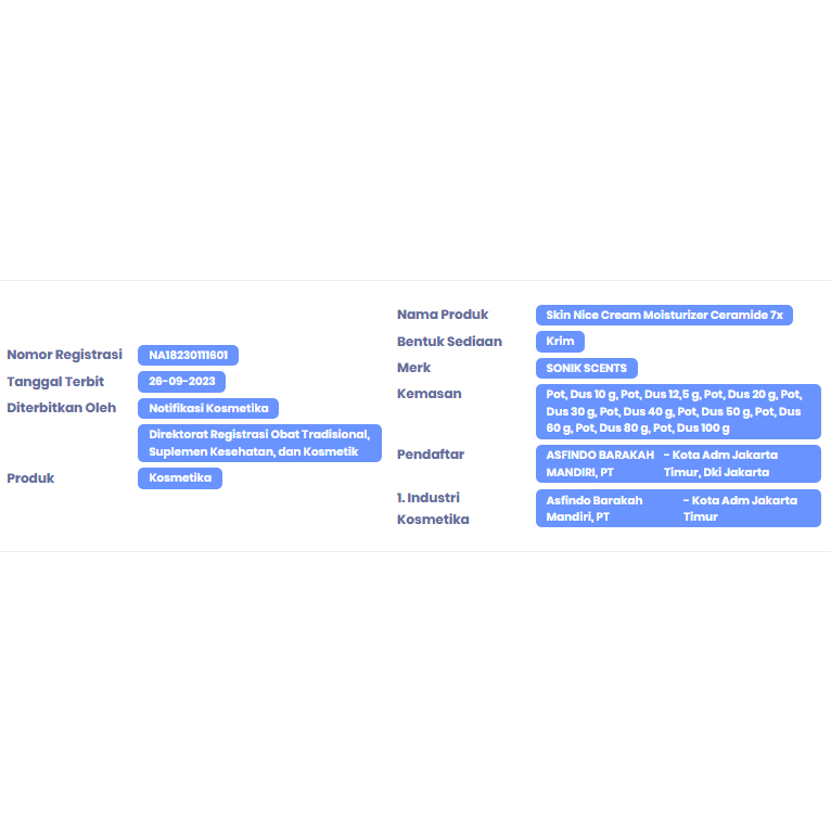 SKIN NICE 7x Ceramide Moisturizer Gel -50g/30g Moisturizer Cream Pemutih Wajah / Krim Kulit Kering & Sensitif BPOM Aman