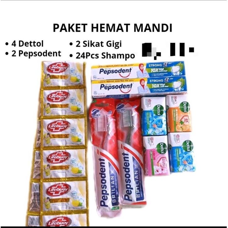 Paket Hemat Mandi 4 Dettol/ 4 Zen/ 3 Shinzui / 3 Lifebuoy + Shampo Lifebuoy 1 Renteng + 2 Pastagigi Pepsodent 90gr + Gra