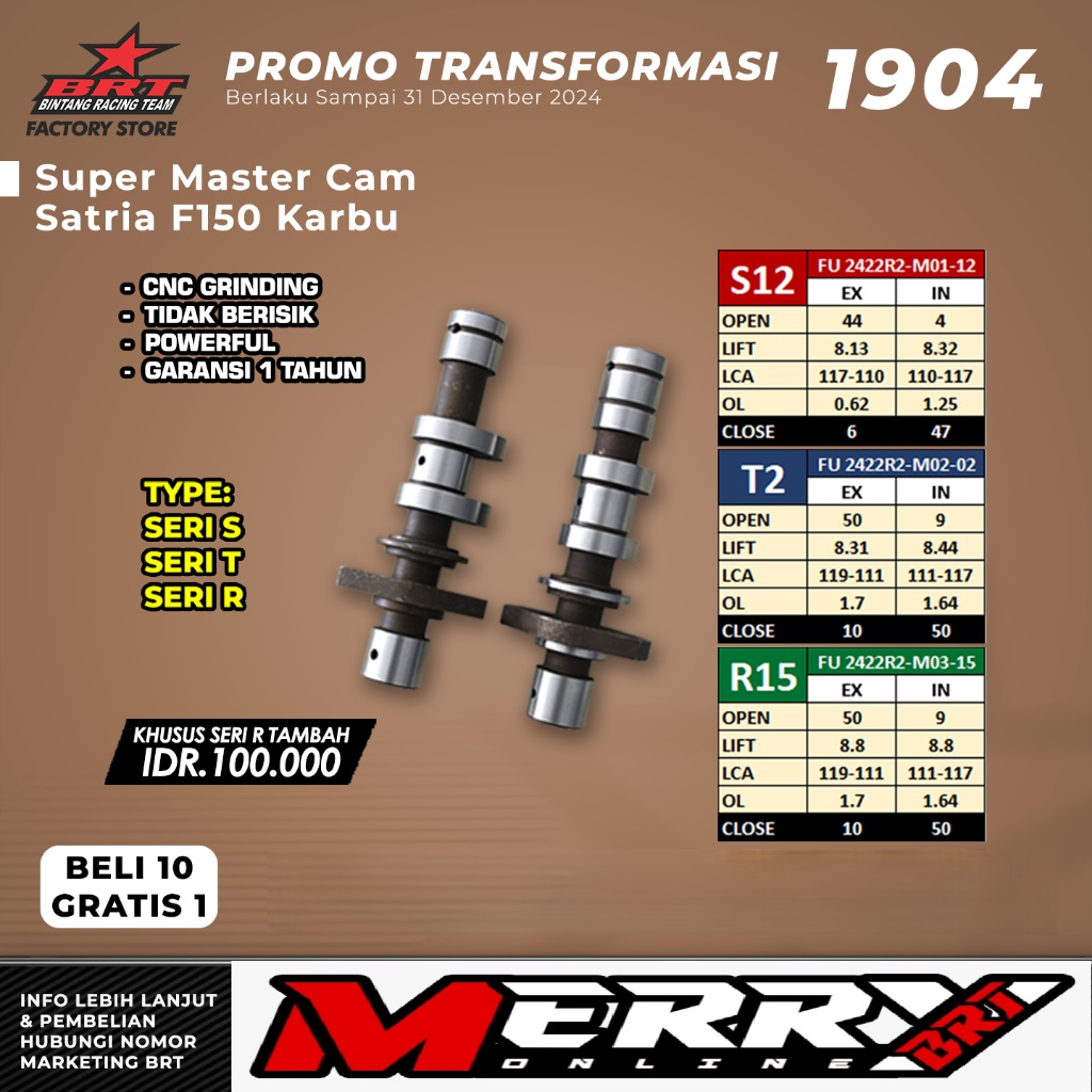 Master Cam Brt Noken As Satria Fu 150 Karbu S12 T2 R15