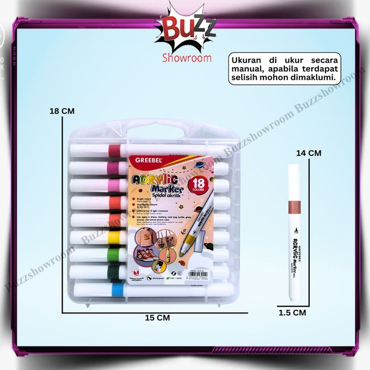 Acrylic Marker Greebel Single 18 Warna Premium Set 18W Spidol Akrilik
