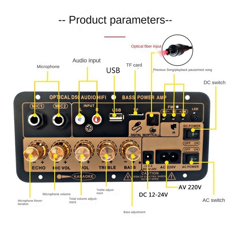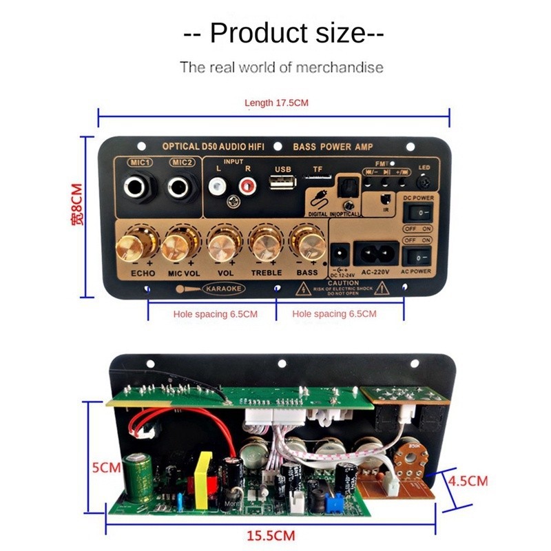 1000W Amplifier Board Audio 12V/24V/220V Bluetooth USB Radio TF DIY Speaker Woofer Ampli Full Bass Subwoofer 8-10 Inch H
