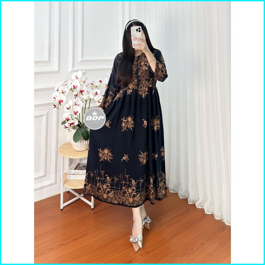 Dianputri - Daster Dress Maura Batik Cap Rayon Grade A Busui - Daster Wanita Lengan Panjang - Daster Kekinian - Baju Tid