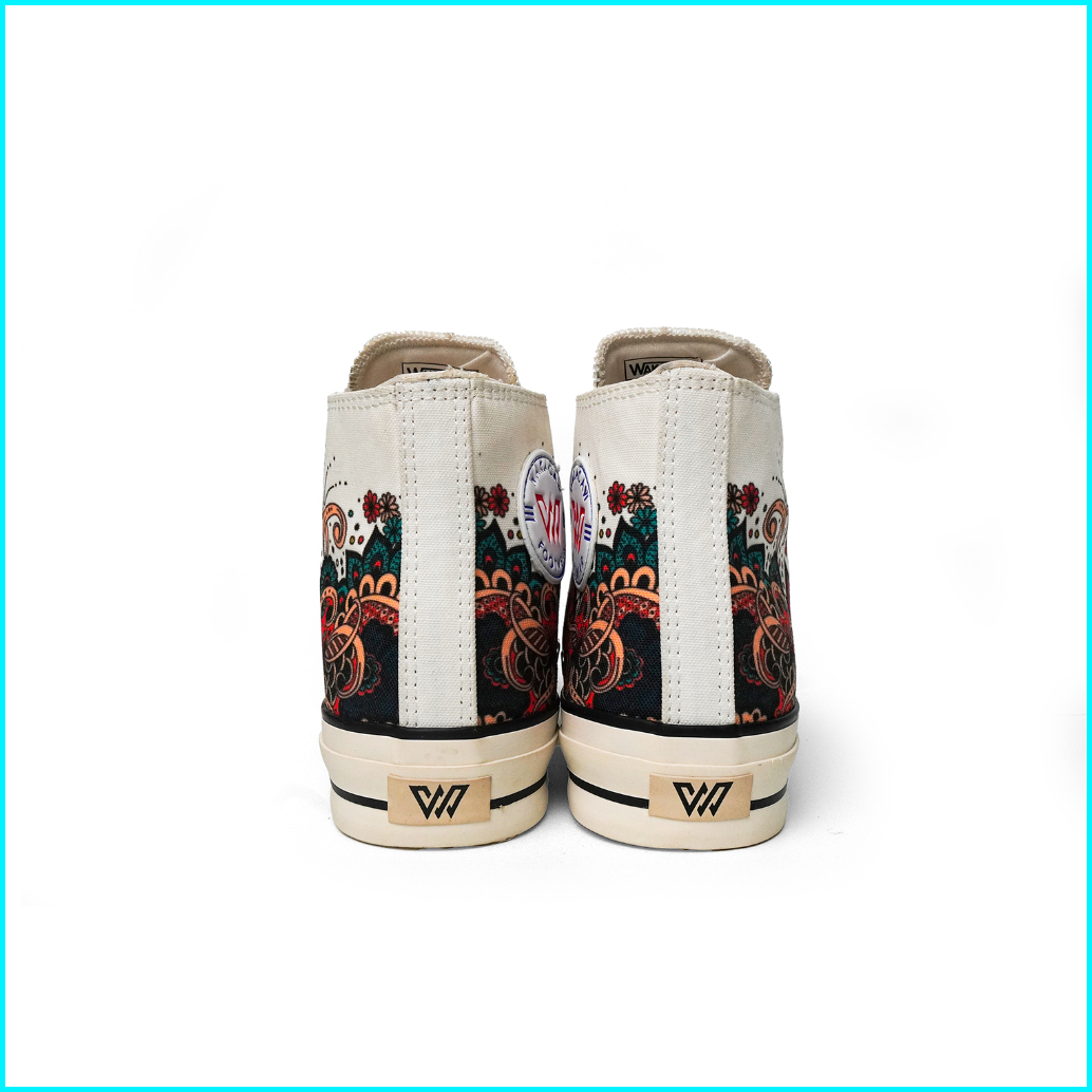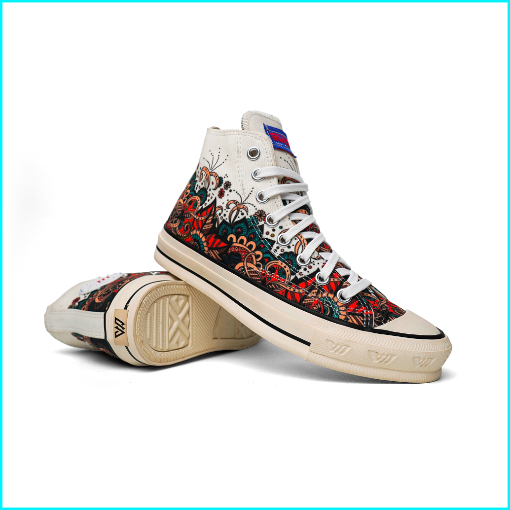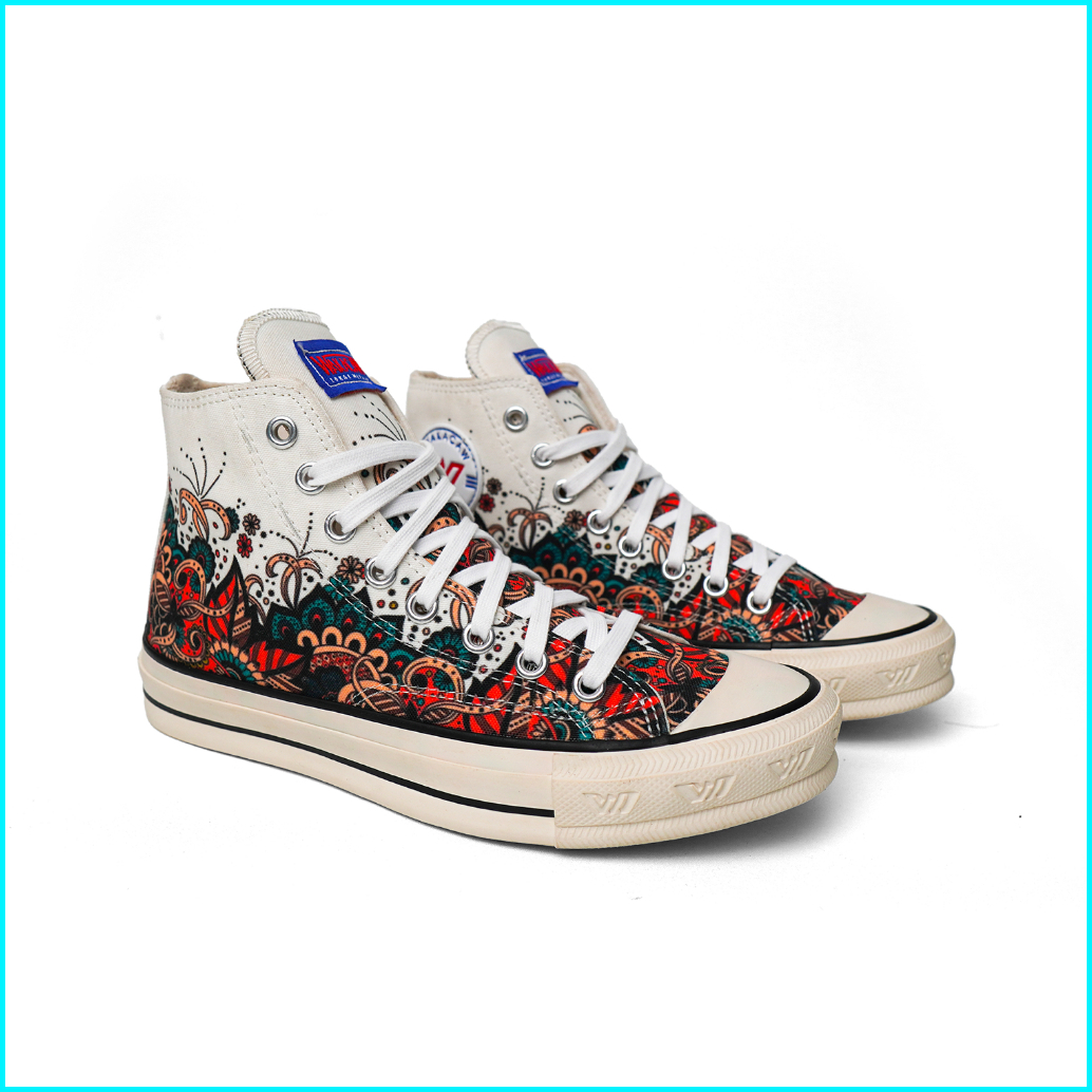 Wakacaw - Batik Etnik Off White Hi Series Sepatu Casual Sepatu Sneakers Boot Vulcanised Pria Dan Wanita