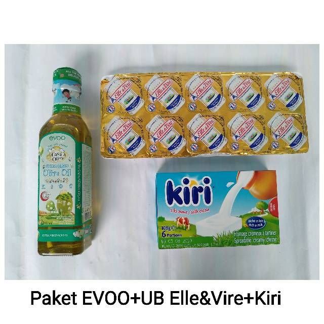 Paket Hemat MPASi Evoo Casa di Oliva dan UB Elle Vire Anchor Unsalted butter + keju kiri dan babybel