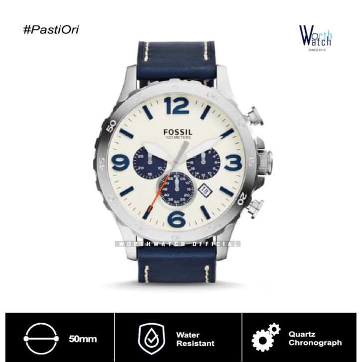 Jam Tangan Pria Besar Nate Chronograph Navy Leather Strap Original BNIB 50mm