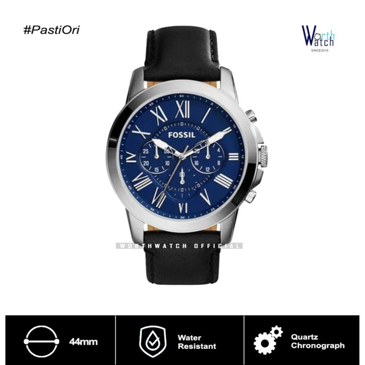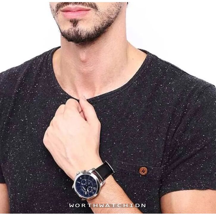 Jam Tangan Pria Elegan Grant Chronograph Blue Dial Black Leather Strap Original BNIB 44mm