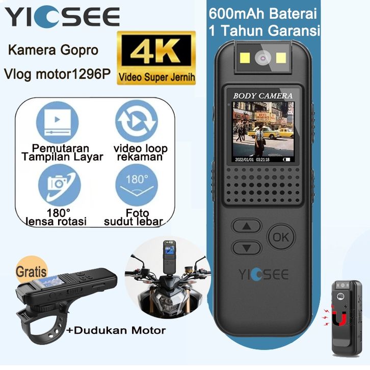 Murah Yicsee Body Cam 1920P Kamera Dash Cam untuk di Motor 360 Derajat Action Cam 4K Ultra HD 60fps 600mAh Baterai Kame