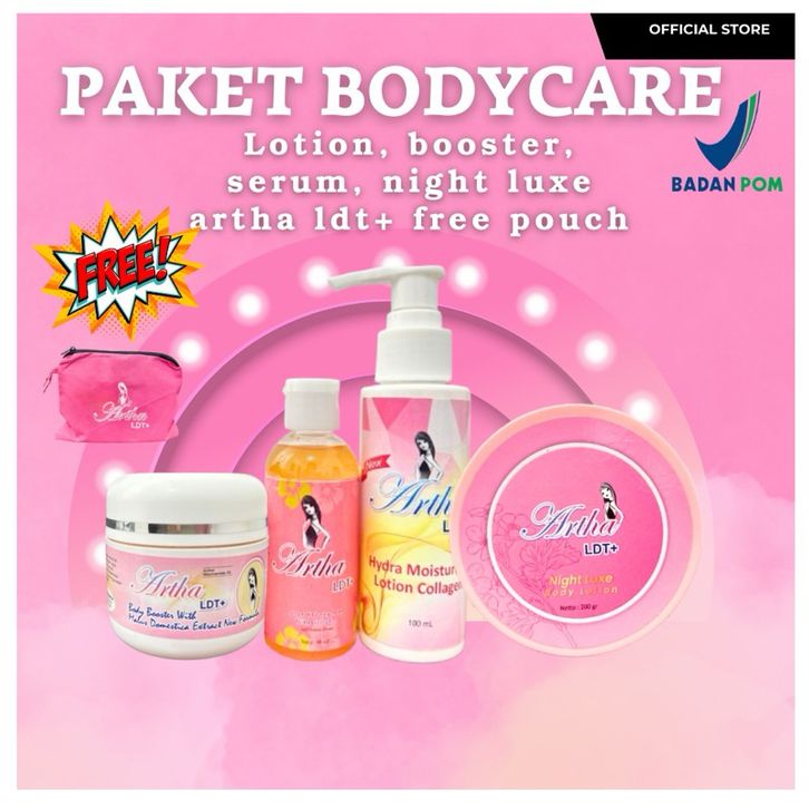 ARTHA LDT PAKET BODYCARE LOTION, BOOSTER, BODY SERUM AHA, NIGHT LUXE BODY LOTION FREE POUCH