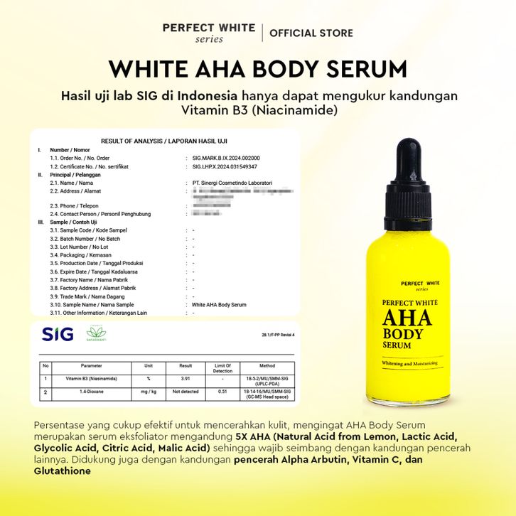 PERFECT WHITE Bundle AHA Kojic Lotion 100ml, AHA Body Serum 50ml, Red Exfoliate Body Toner 100ml