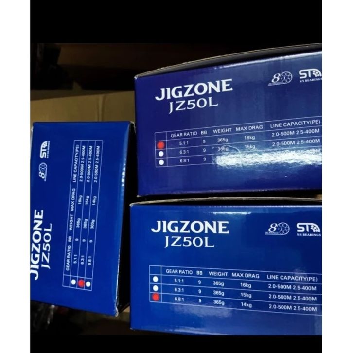 Gulungan Pancingan reel pancing type overhead jigging ryobi jigzone jz 50 left warna blue
