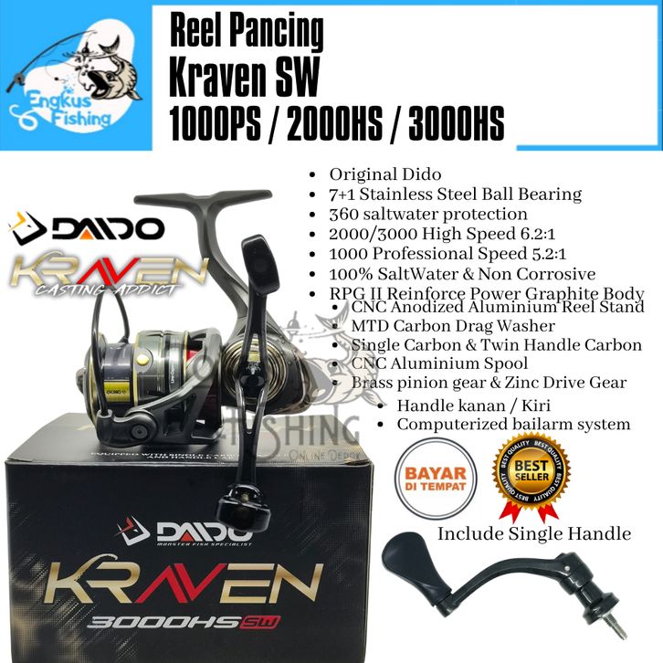 Gulungan Pancingan Reel Pancing DAIDO KRAVEN SW 1000 PS - 3000 HS 6.2:1 Waterproof 7.0 7+1 Bearing Murah - Engkus Fishi
