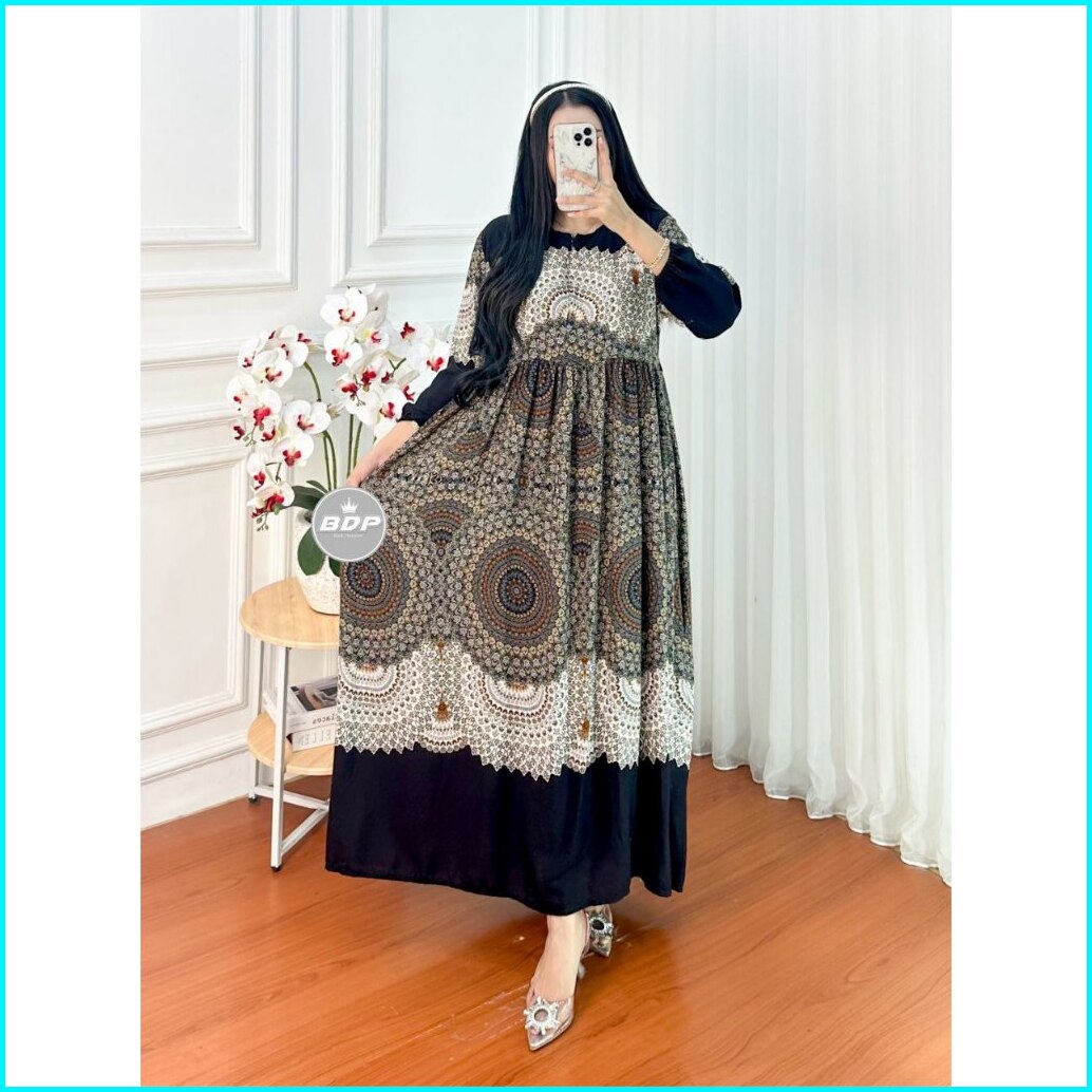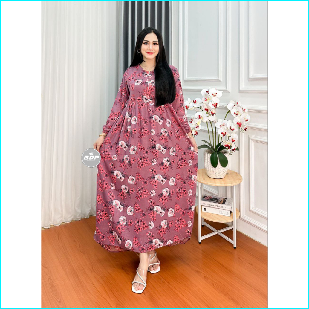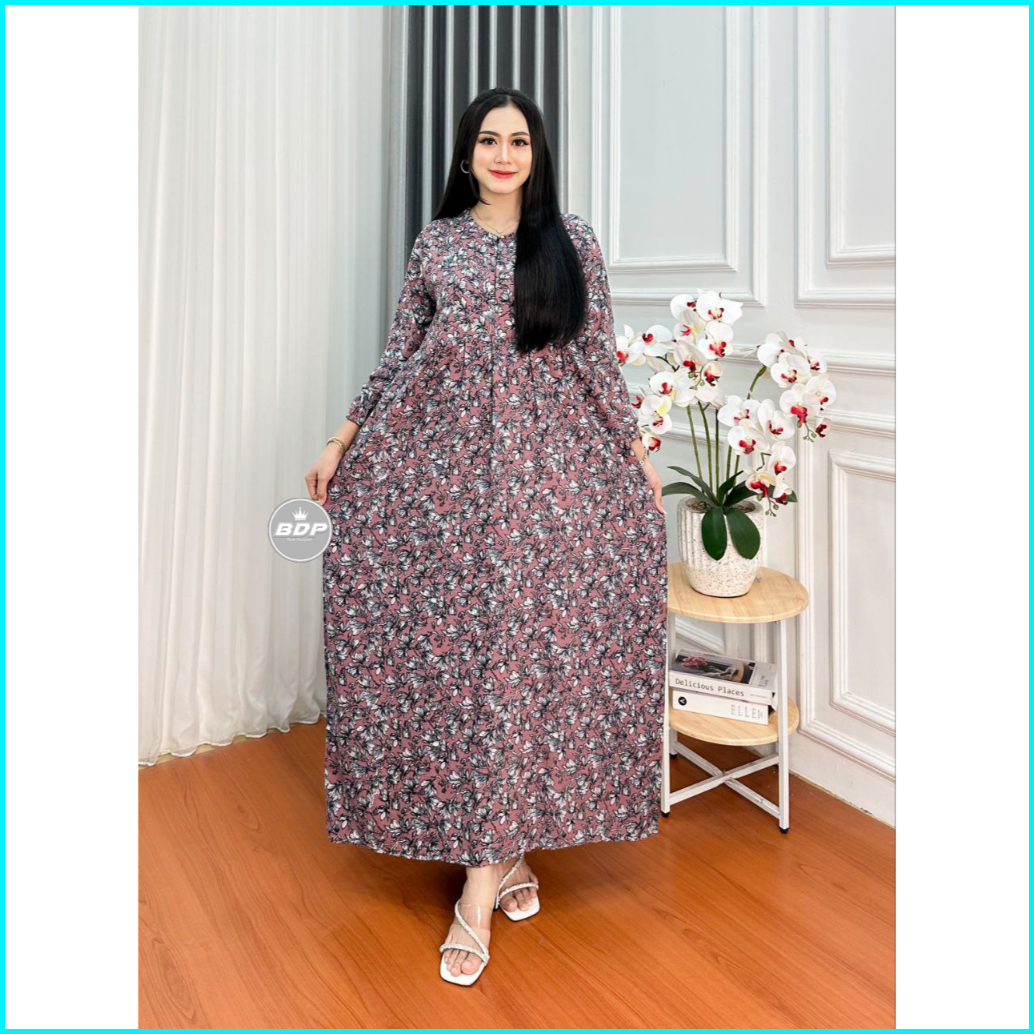 Dianputri - Daster Dress Maura Batik Cap Rayon Grade A Busui Resleting Depan Daster Wanita Lengan Panjang Daster Kekinia