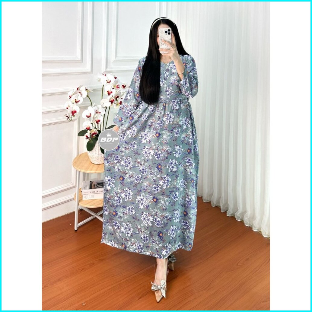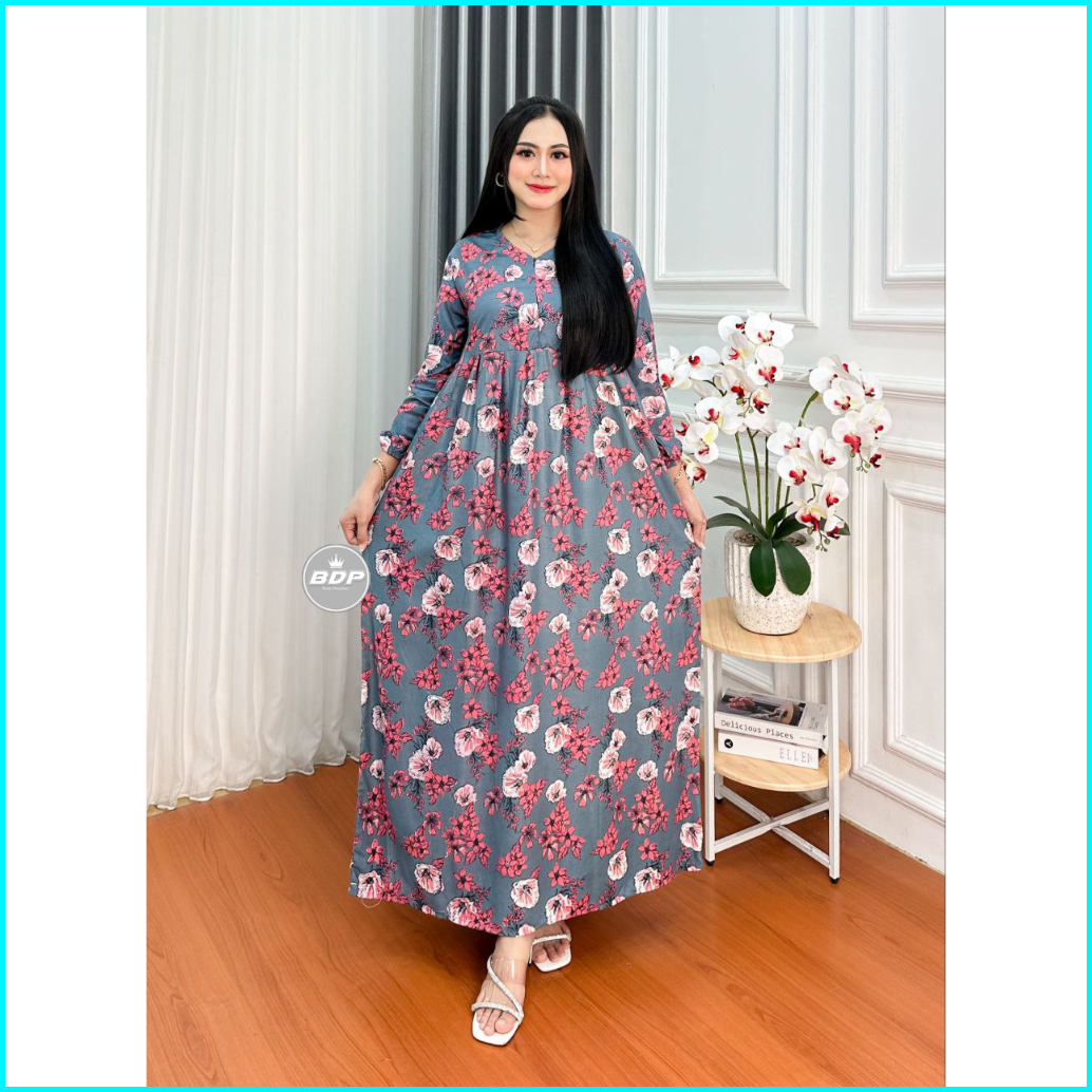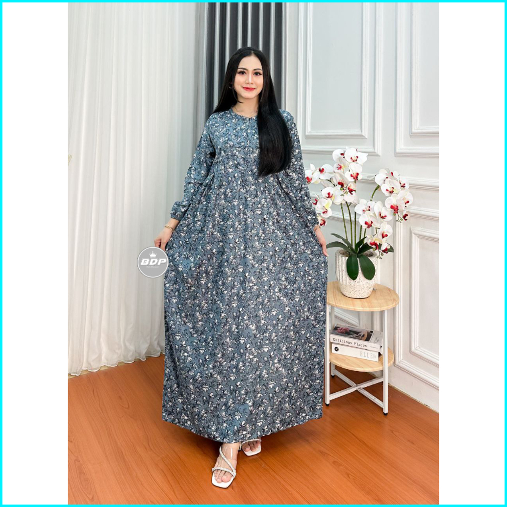 Dianputri - Daster Dress Maura Batik Cap Rayon Grade A Busui Resleting Depan Daster Wanita Lengan Panjang Daster Kekinia