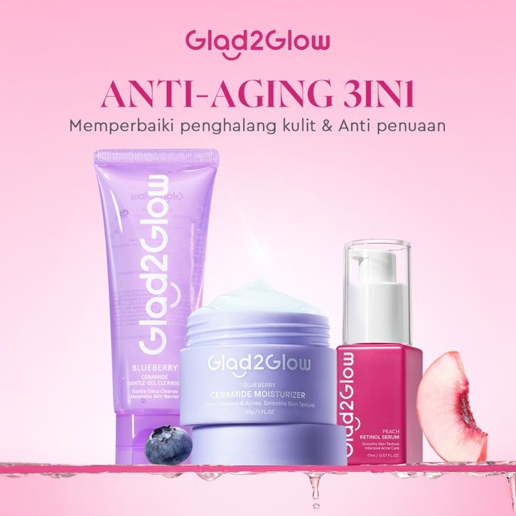 Glad2Glow Bundle All in 1-2/3/4/5 Pcs Paket Skincare Blueberry Moisturizer+Blueberry Ceramide Low Ph
