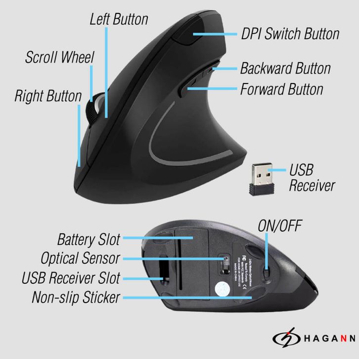 Mouse Wireless Vertical Gaming Ergonomis Laptop Vertikal Wireles USB Mause PC Komputer Game Ergonomic