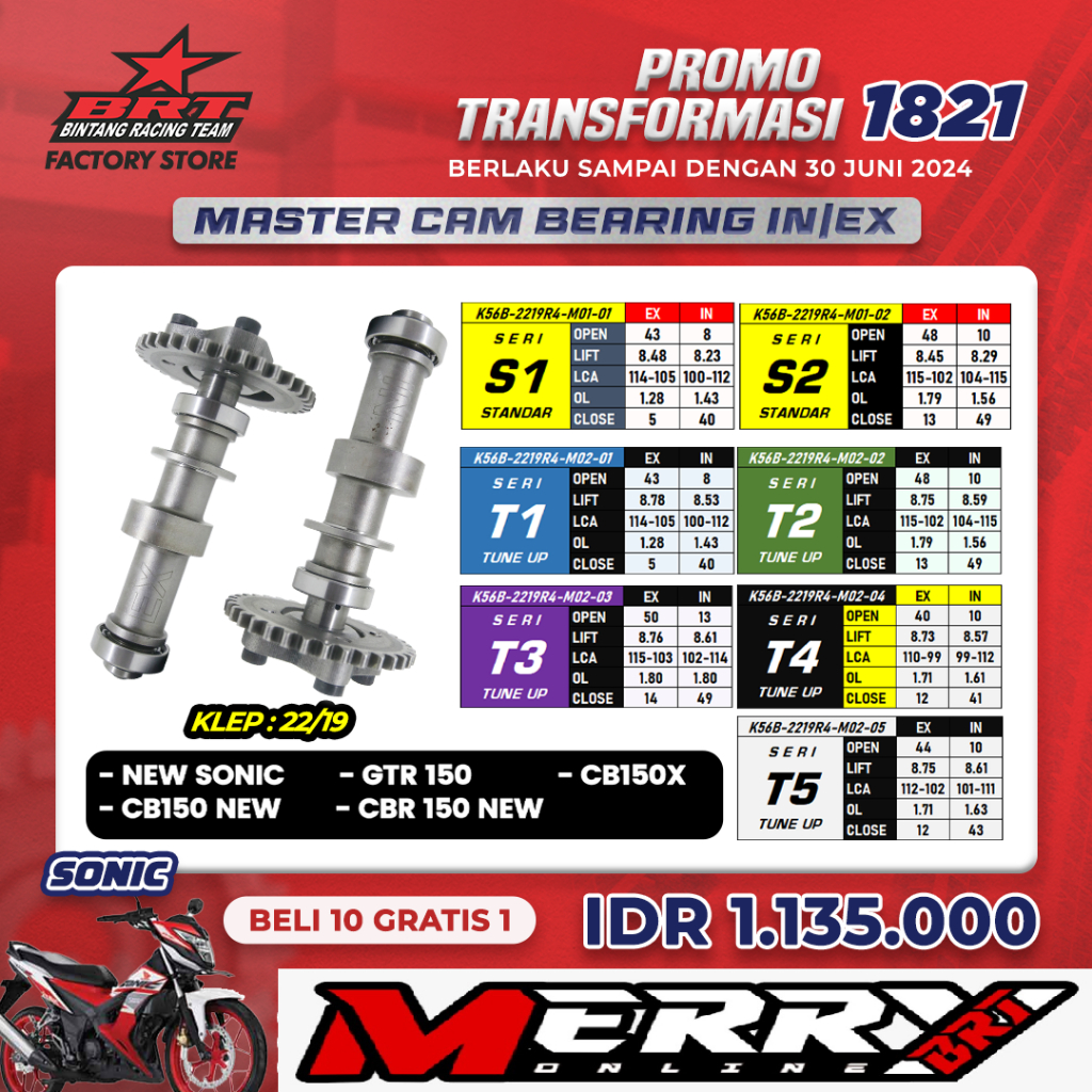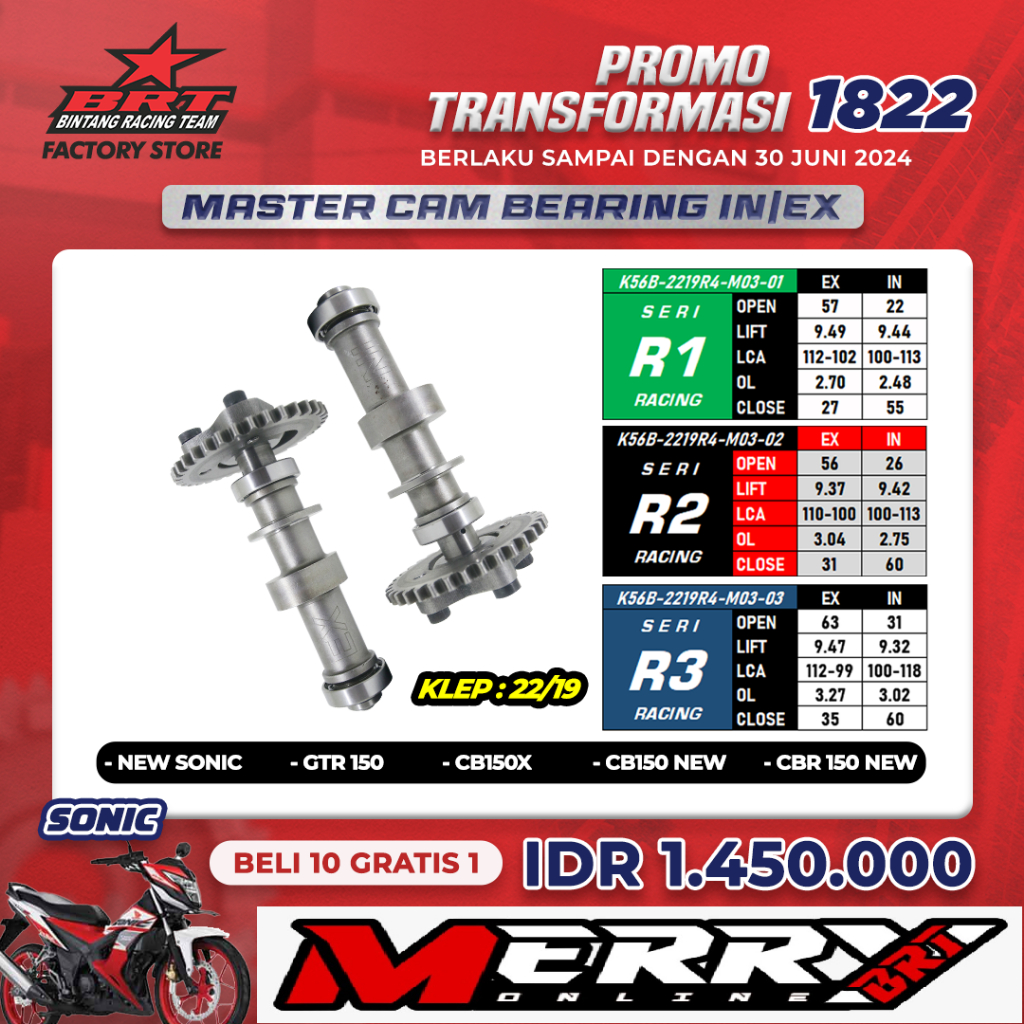 Master Cam Noken as Bearing BRT Sonic 150 New GTR 150 CBR CB 150 New Seri R