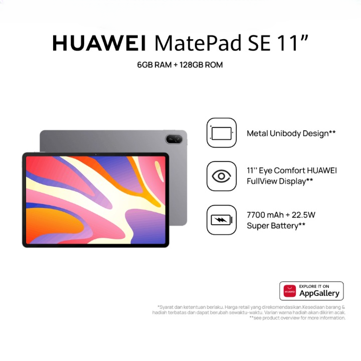 Tablet Huawei Se 11 Pro 6+128gb Matepad Fhd+eye Comfort Display 7700mah Metal Unibody Garansi Resmi Tanpa Dp Termurah