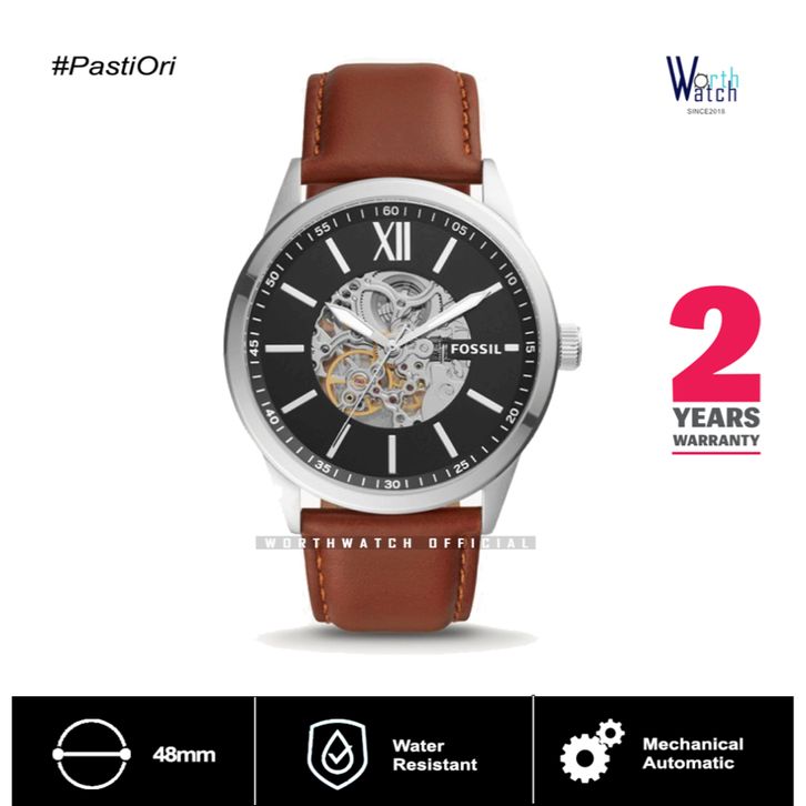 Jam Tangan Pria Otomatis Elegan Flynn Mechanical Automatic Skeleton Leather Strap Original BNIB 48mm