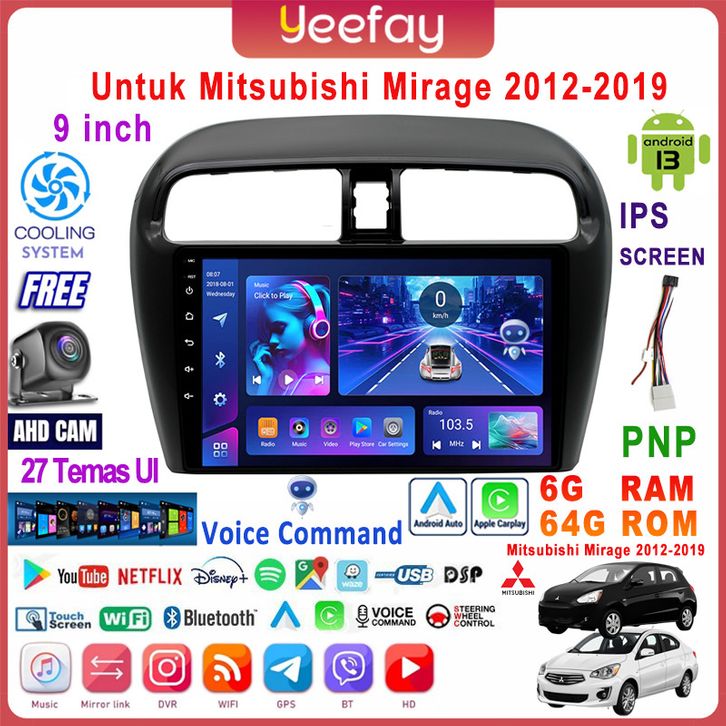 ⭐Untuk Mitsubishi Mirage 2012-2019⭐6G+64G Android 13 Head Unit Termasuk Frame/PNP Soket 9 Inch IPS