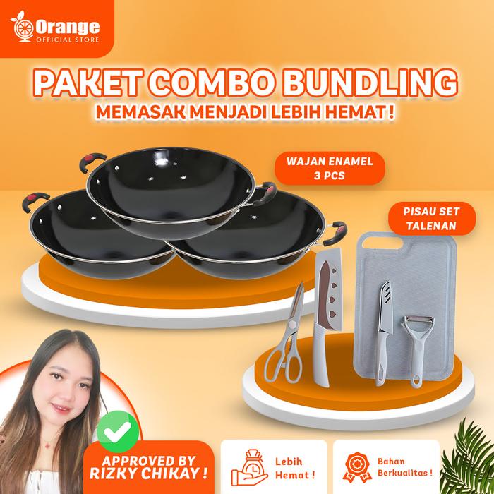 GHL x RIZKY CHIKAY BUNDLING 3 PCS Wajan Penggorengan Enamel + 1 Set Pisau Dapur Gunting Talenan Pengupas