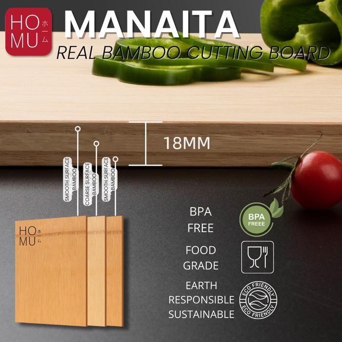 HOMU MANAITA TALENAN BAMBU ASLI REAL BAMBOO SINGLE PIECE NATURAL CUTTING BOARD TEBAL KUALITAS EKSPOR