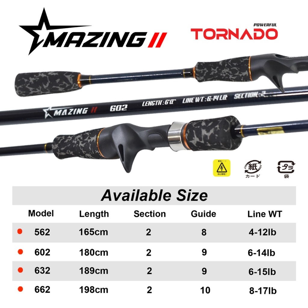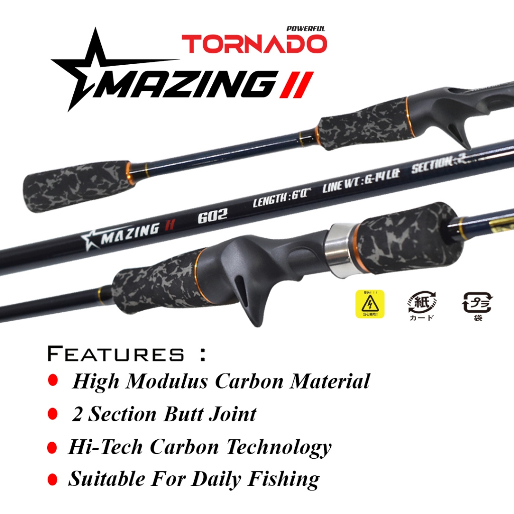 TORNADO Joran Baitcasting Murah AMAZING II Sambung 2 Mid Joint Carbon Hollow 168CM - 198CM Untuk Fresh Water Game