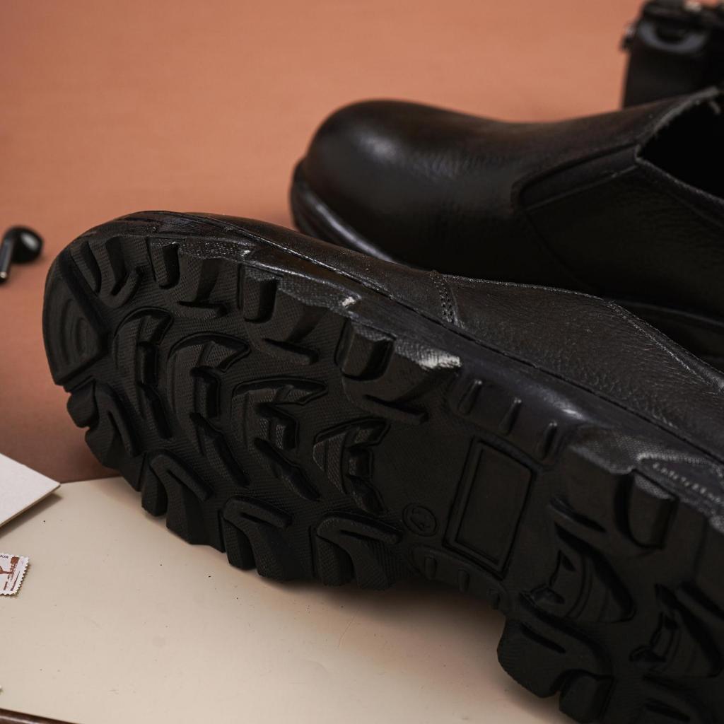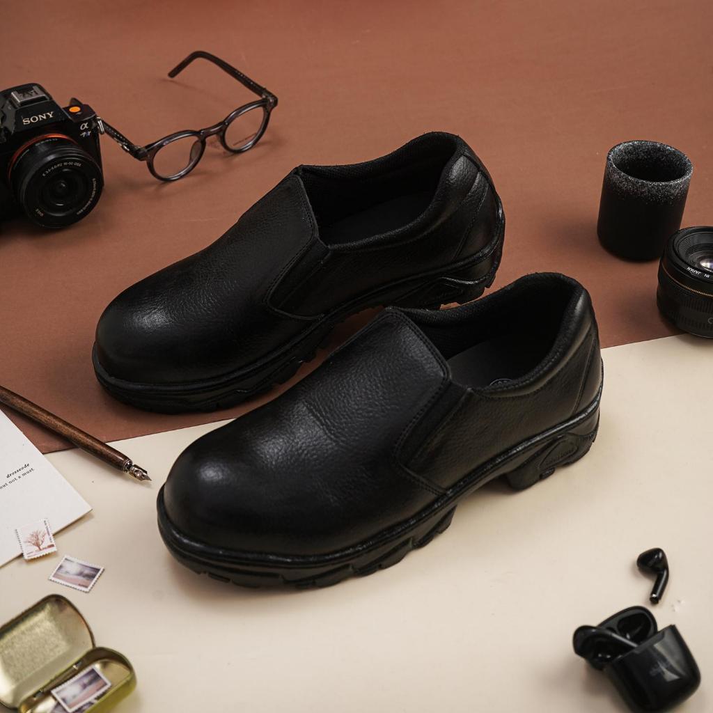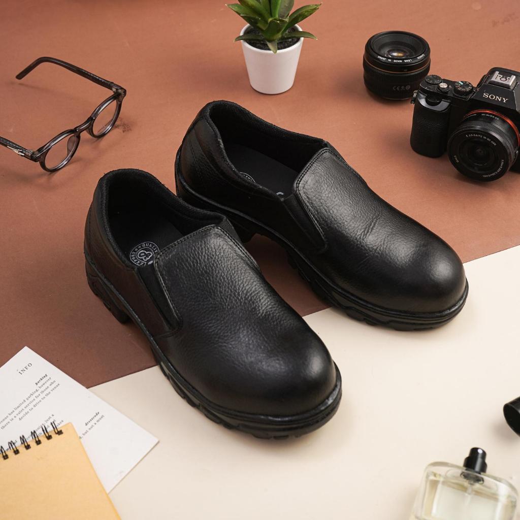 Sepatu Safety Slip On Chef Kitchen Septy Pria Ujung Besi Proyek Kulit Sapi 100 PERSEN Septi Sefti Savety Slop Selop Kerja Lapa