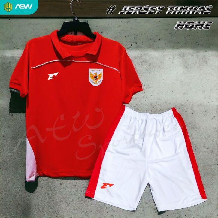 Jersey bola baju futsal kaos supporter fans timnas indonesia home fantasy logo garuda leher berkerah pria wanita bahan d