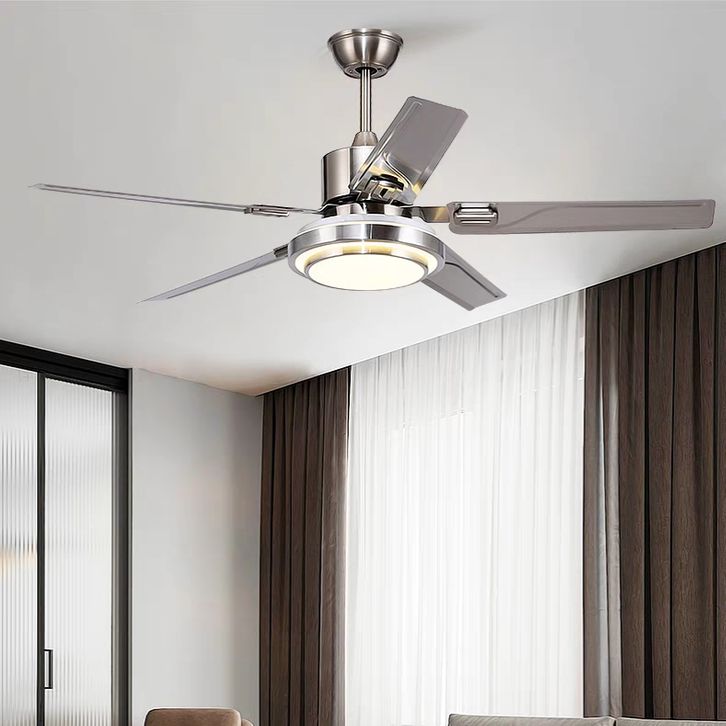 Lampu Kipas Angin Plafon Stainless Steel Angin Tinggi 52 Inci Lampu Kipas Restoran Minimalis Modern Lampu Kipas