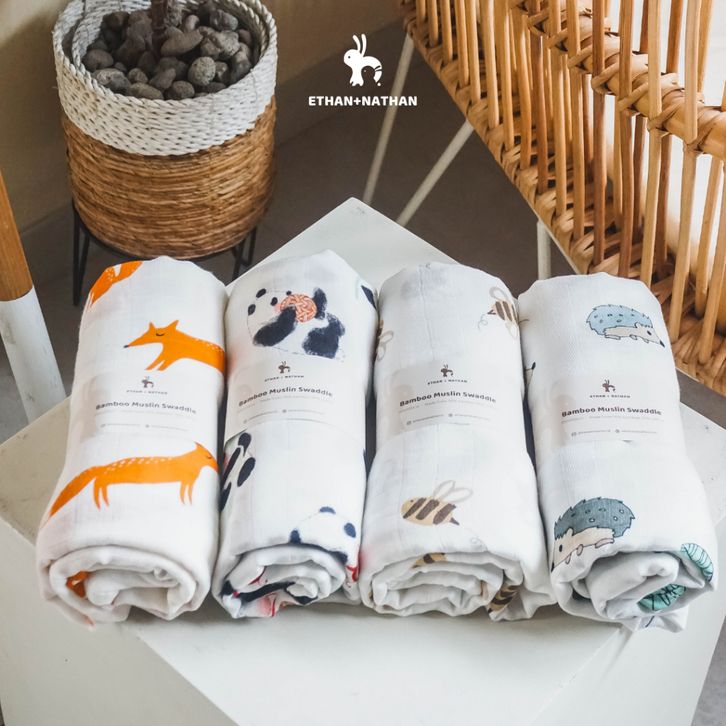 PROMO Ethan+Nathan Baby Swaddle Blanket/ Bedong Bayi / Selimut Bayi Muslin oholl