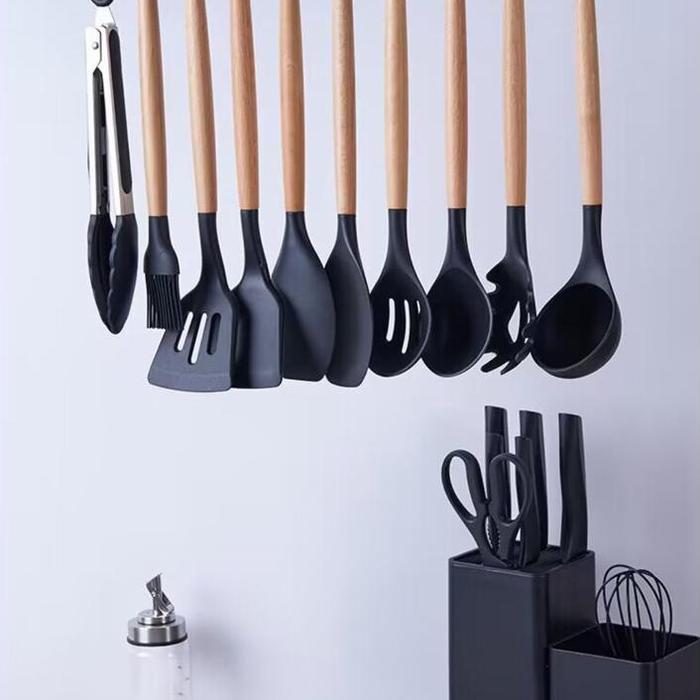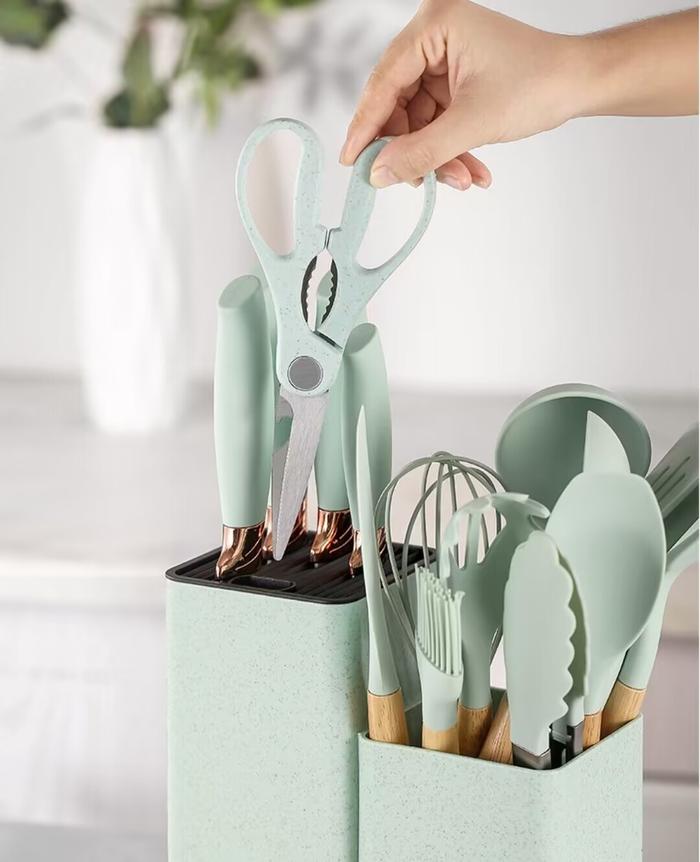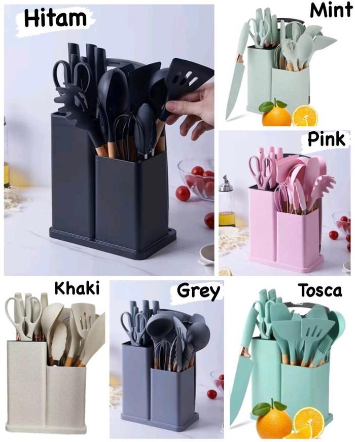 KITCHENWARE SET 19 PCS PISAU DAN SUTIL SILIKON SPATULA SET 19 PCS PISAU GUNTING SET TALENAN