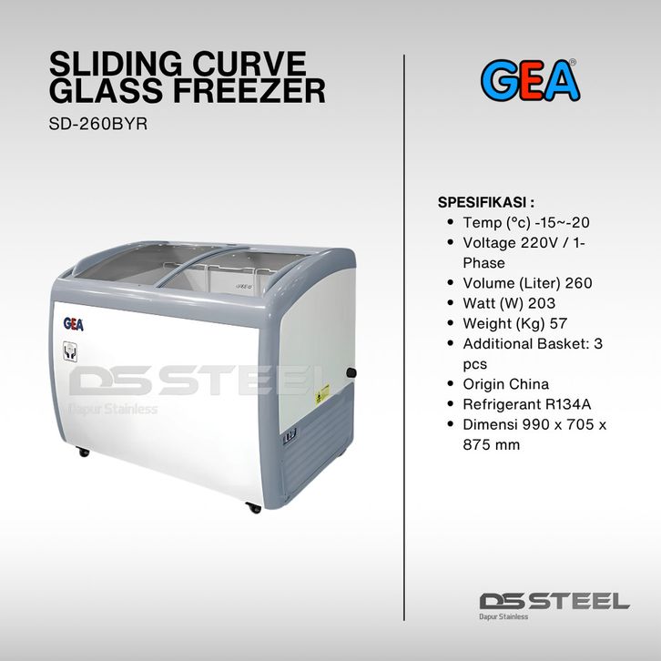 GEA Sliding Curve Glass Freezer GEA SD-260BYR Freezer Pintu Kaca Sliding