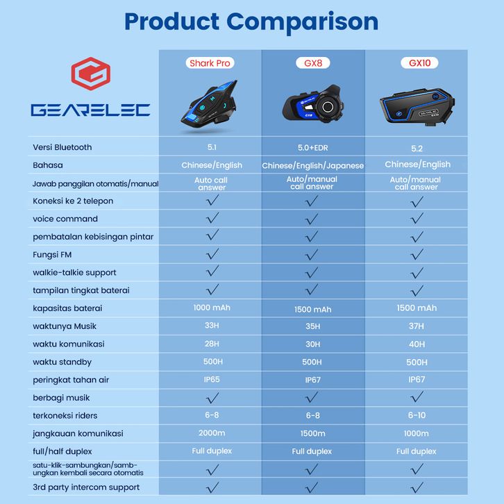 GEARELEC shark pro BT5.1 Helm Bluetooth Intercom Headset 2-8 riders IP65 Waterproof Music Sharing