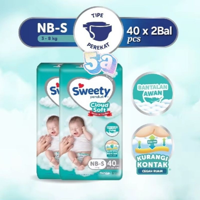 Sweety Silver Comfort Cloud Soft Newborn NB-S40 (PAKET 2 BAL) Popok Perekat
