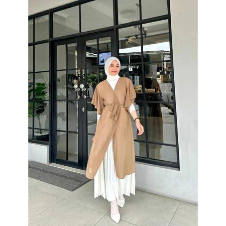 Outer Wanita Korea Nara Ceruty Lengan Kriwil Outerwear Casual Wanita Bahan Ceruty Babydoll Terlaris
