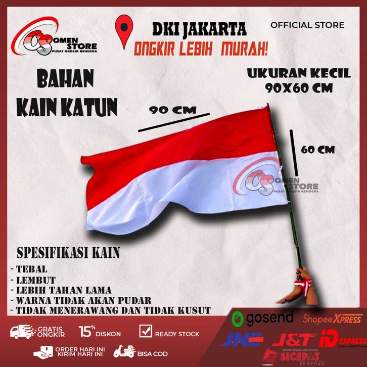 BENDERA MERAH PUTIH KAIN KATUN SUPER TEBAL MACAM MACAM UKURAN