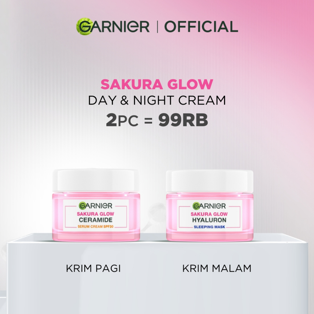 GARNIER Sakura Glow Ceramide Simple Set Krim Wajah Glowing Day Cream & Night Cream 50 ml Bundle Paket Skincare - Krim Si