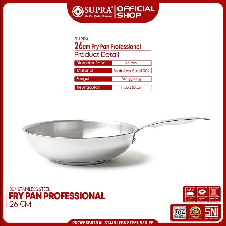 SUPRA Panci Wajan Penggorengan Stainless Steel SUS 304 Frypan 26 Cm Professional Series